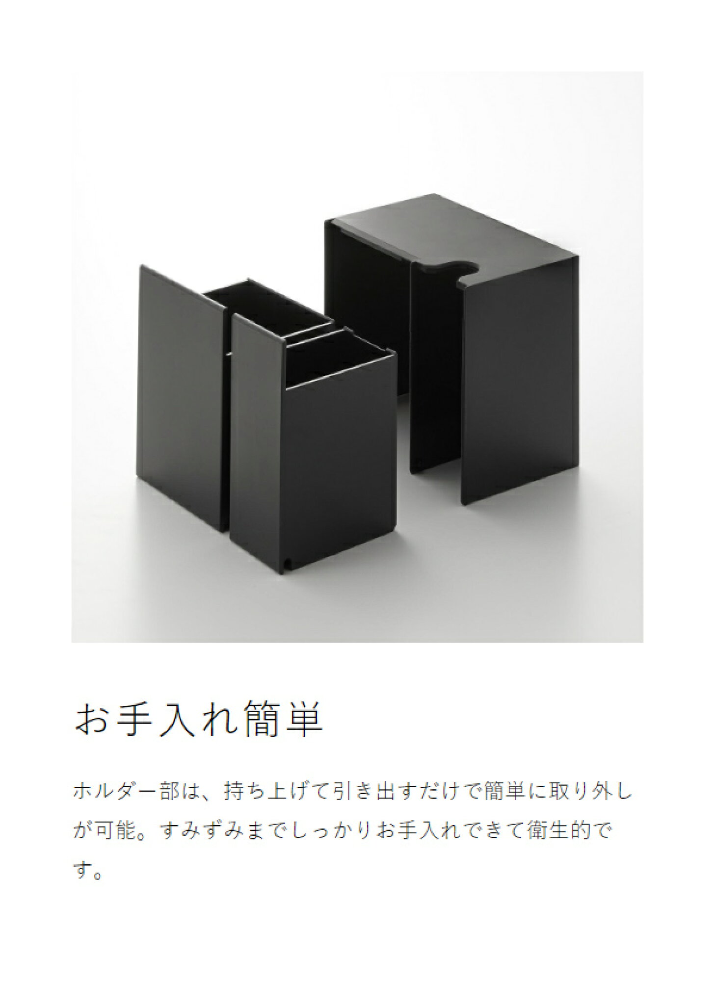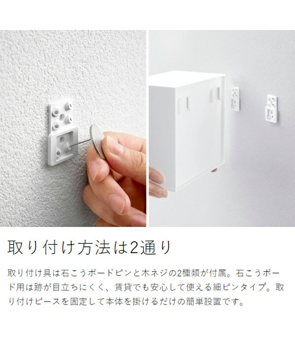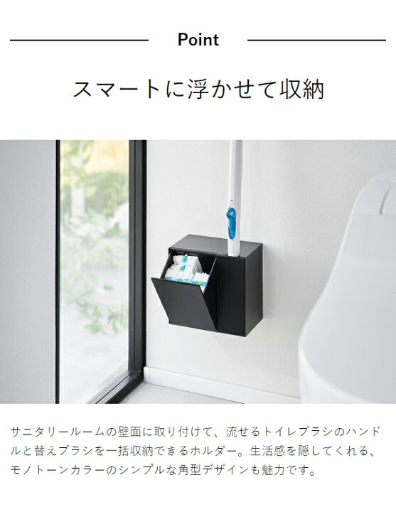 壁の穴が目立ちにくい石膏ボードピンか木ネジで、簡単に取り付けできます。 収納部分はそれぞれフラップ式で開閉しやすく、片手でサッと取り出せるのが便利。替えブラシは約14個収納できて、トイレスタンプの収納にも◎。 浮かせることで床掃除がしやすく、丸洗いできるのも嬉しいポイントです。